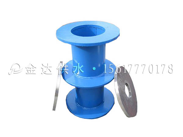 D型;鋼制套管 數(shù)量1材質(zhì)(Q235A)翼環(huán)數(shù)量1 材質(zhì)(Q235A)固定法蘭 數(shù)量1 材質(zhì)(Q235A 擋板數(shù)量1 材質(zhì)(Q235A)擋圈 數(shù)量1 材質(zhì)(Q235A) 說明;鋼管和擋圈焊接后經(jīng)鍍鋅處理,再施行與套管安裝,填充材料施工完后,再施行擋板和固定法蘭焊接。